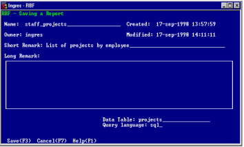 8. Working with RBF Report Specifications : Save Operation—Save a Report Specification : Save Report Frame