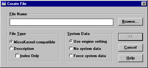 Click Create File at the top of the File Information Editor dialog box. The Create File dialog box appears.