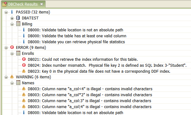 2The Check Database and Check Table action is similar to a wizard except that you make your selection on Data Sources Explorer rather than on a dialog. The result of checking consistency displays in a manner similar to a view, however.