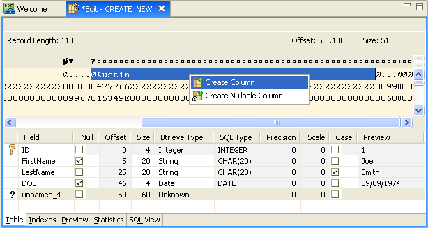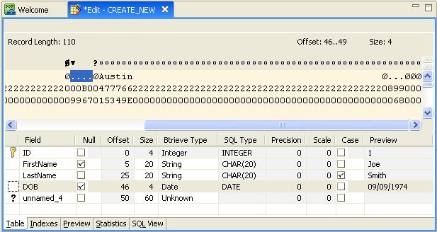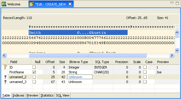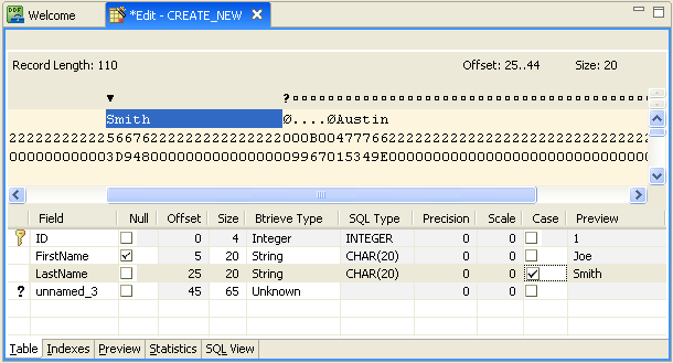 With DDF Builder still open, click the Preview tab in the Table Definition Editor.