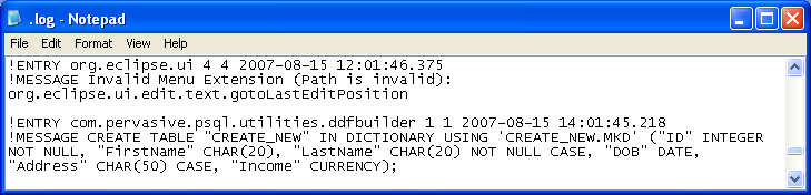 The Log file displays in the default text editor on your system. The following is a sample from the log file for this lesson.