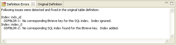 Click OK to clear the message and display the table definition.
