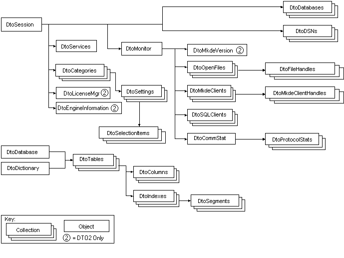 A new DLL was released with Pervasive PSQL V8 SDK that added objects and new properties to existing objects. In order to maintain backward compatibility, a new DLL was created instead of adding this to the previous DTO.DLL. Both are installed and registered with Pervasive PSQL SDK and you can use either one to develop DTO applications. Using the previous DTO.DLL may be important to you if you cannot recompile your application to use the new DLL. However, if you continue to use the previous DTO.DLL, you cannot use the new objects or some new properties that were added to existing objects. DTO2.DLL supports 32-bit development environments, including the .NET framework.