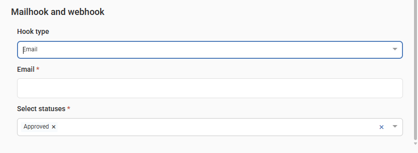 Select statuses: When you activate a mailhook or webhook, select the events you want to receive: