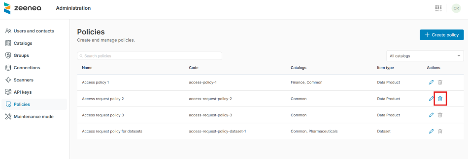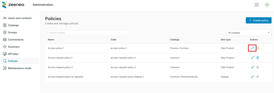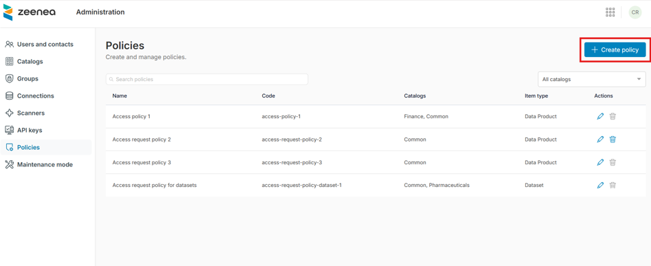 You can create new access request policies in Zeenea Administration.