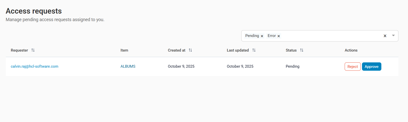After reviewing the details, click Approve or Reject button from the Actions column.