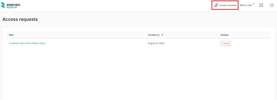 Access requests button in the upper-right corner of the Zeenea Explorer header.
