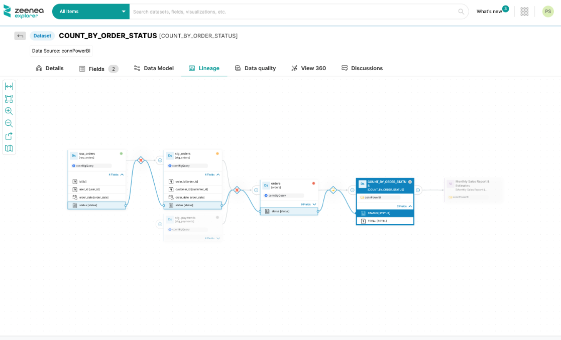 Click on the Field to highlight its specific lineage among the open Datasets.