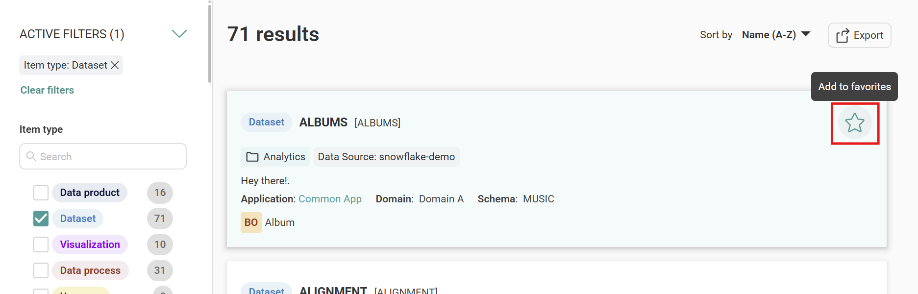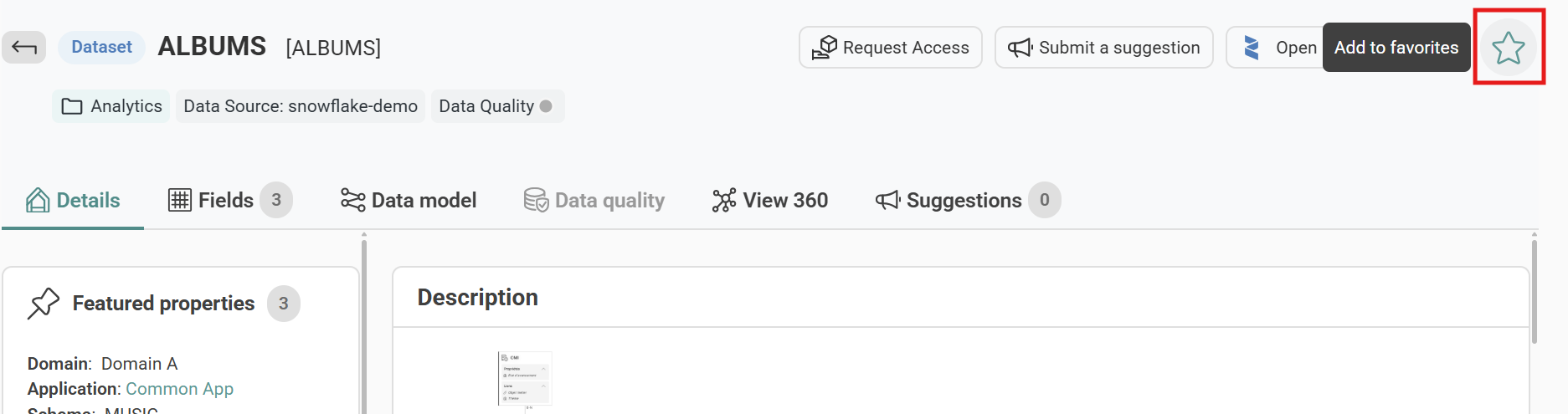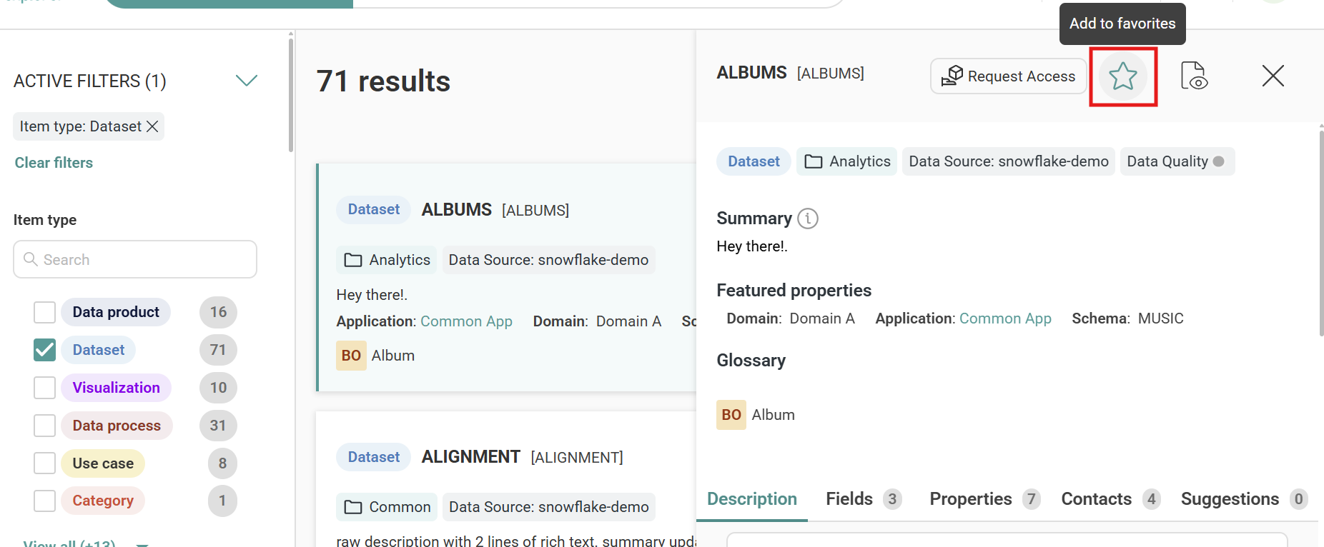 You can mark an item as a favorite from multiple locations in Zeenea Explorer: