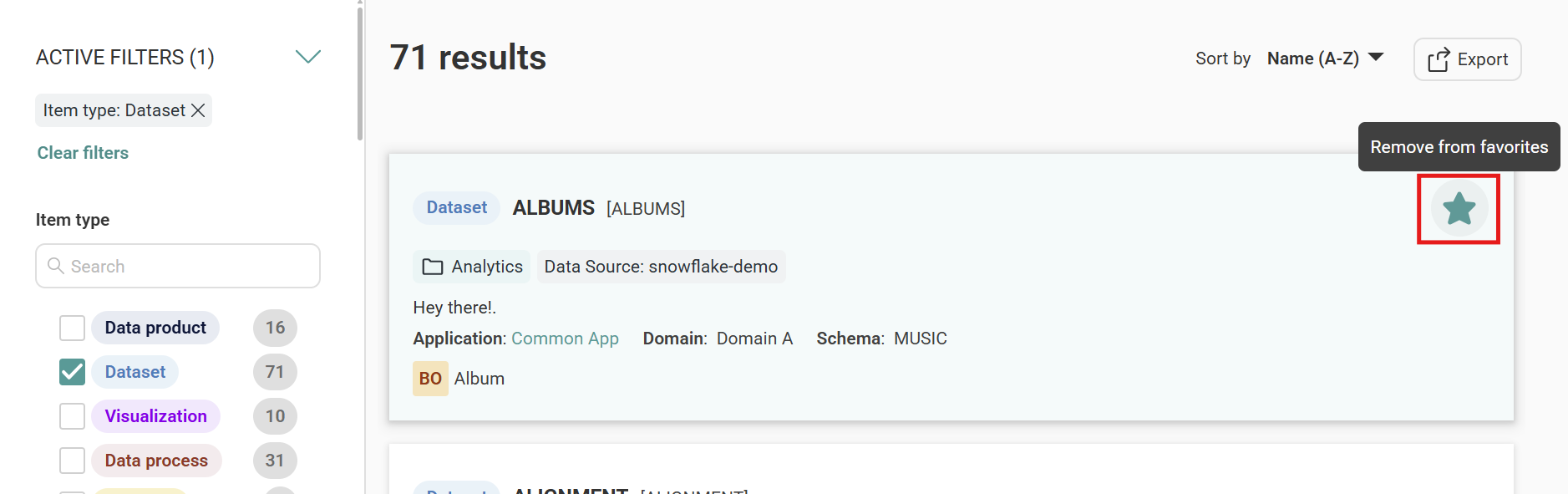 Whether you're revisiting key datasets, monitoring critical documentation, or keeping tabs on frequently referenced assets, Favorite Items help you work faster and stay organized.