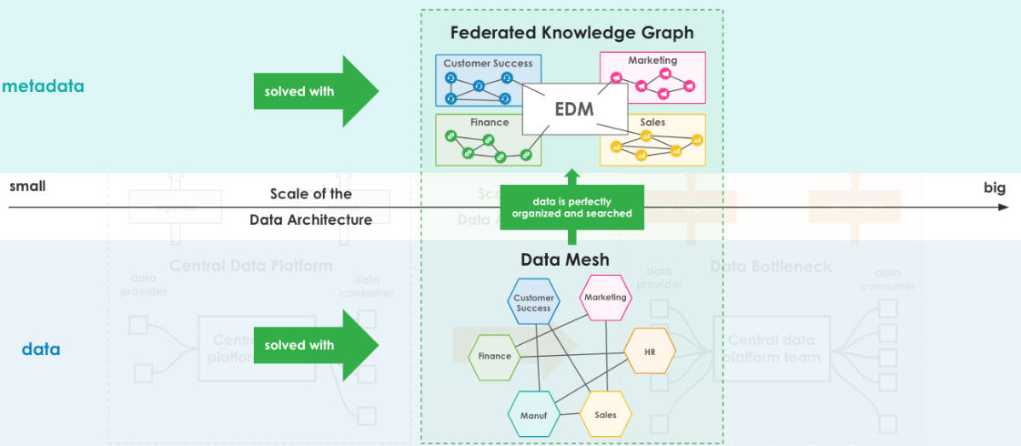 The EDM allows each domain to share its managed and valuable data products and assets with the federation without overwhelming end-users with less managed or less usable data assets.