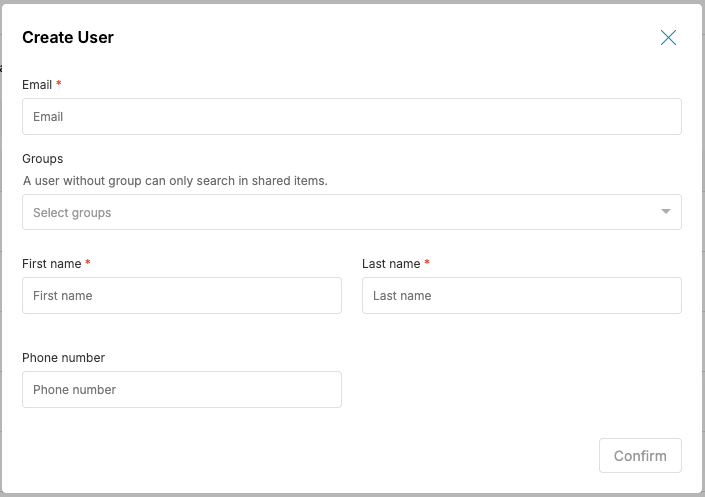 Note: Once the user is created, you can not modify his email address. If necessary, you delete and then recreate the user.