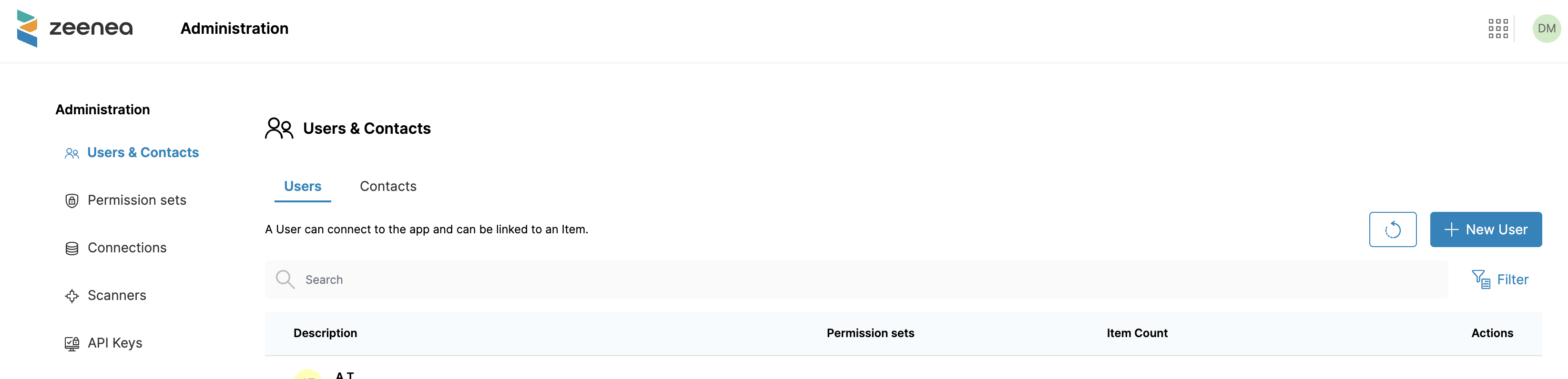 When you create a new user, a new contact is automatically created in the Zeenea repository.