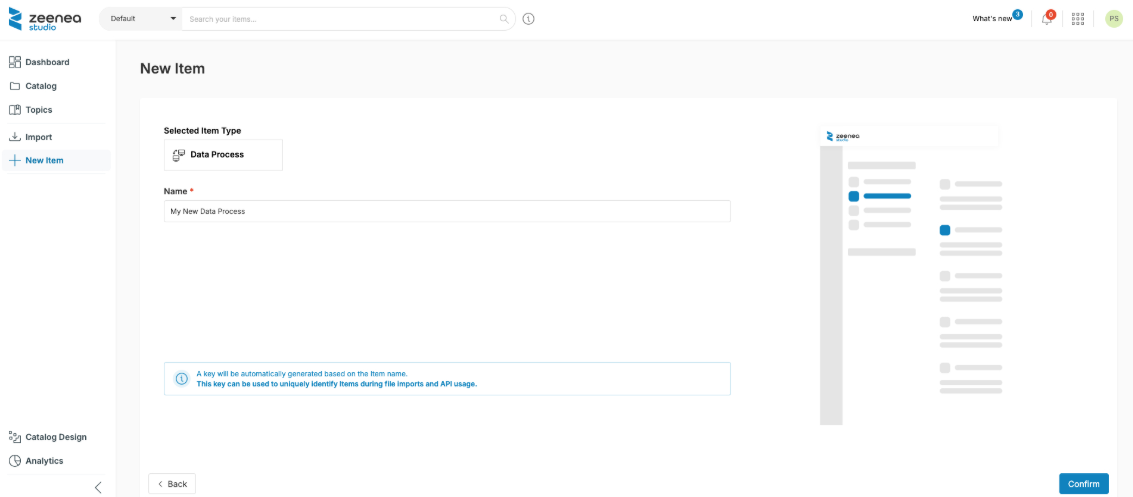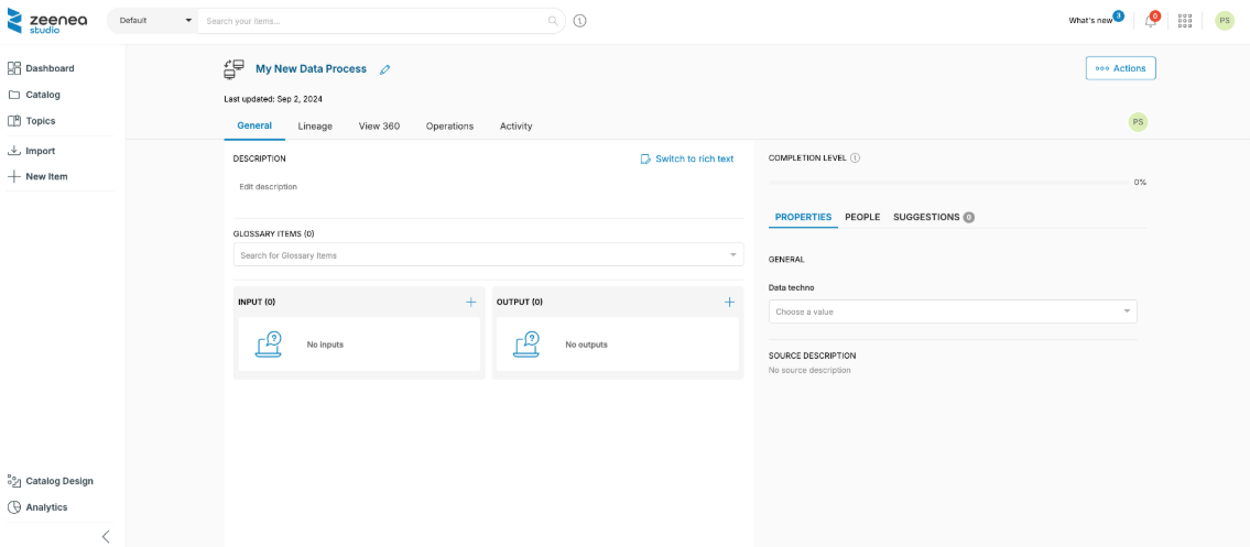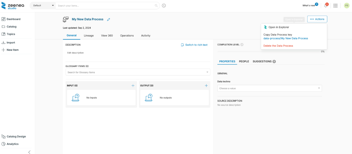 Note: Data Processes can also be imported from an external source via a connector, or created using the Catalog API.