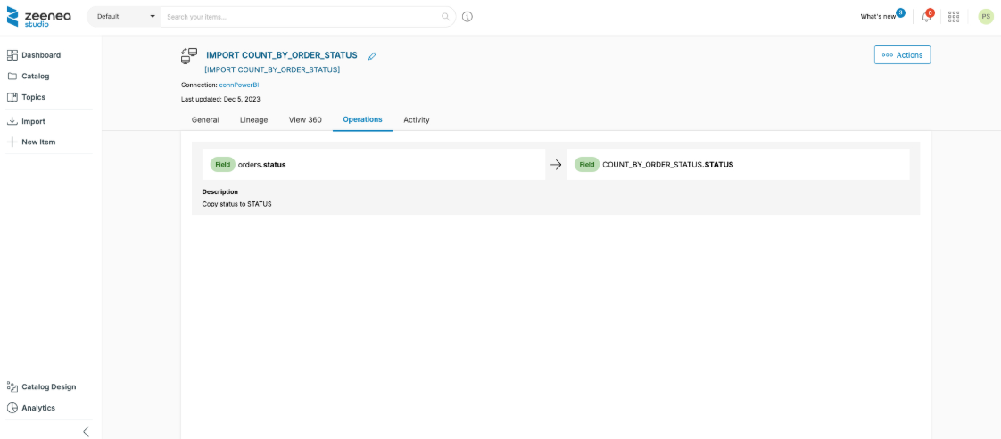 Using the Catalog API, you can also declare lineage at the Field level. This information is available in read-only mode in the "Operations" tab of a Data Process in the Studio.