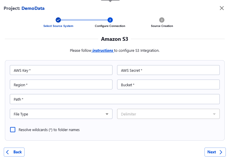 Delimiter (Optional): Choose the delimiter used in your files (e.g., comma, tab, space).