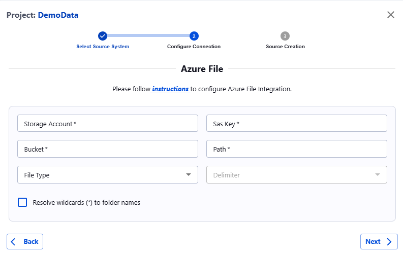 Once the SAS token is generated, navigate to the Actian Data Observability UI and enter the following details: