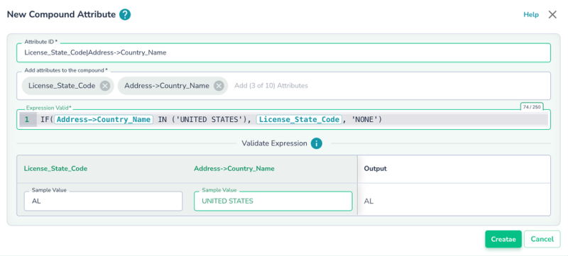 Actian Data Observability offers a Compound Attributes feature, which allows you to define an SQL-like expression, validate it in real-time, and inspect outputs similar to single-attribute rules.