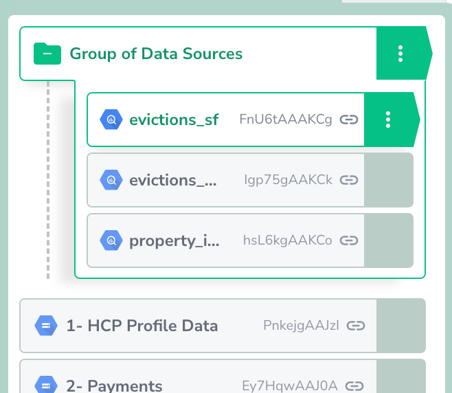 Grouping datasets allows you to connect to multiple tables at once, simplifying configuration: