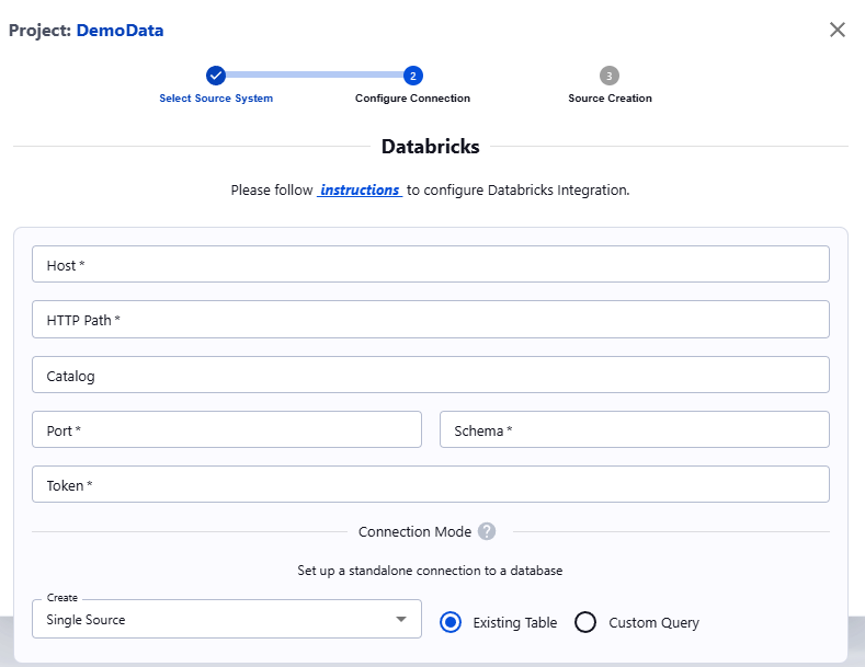 Once you have the necessary information, navigate to the Actian Data Observability UI and enter the following properties: