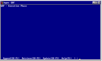 When you choose Append, Update, or Retrieve, QBF displays the appropriate frame for the operation and query target you have chosen.