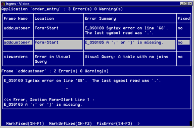 If the code contains any errors, Vision generates an error message and asks if you want to edit the errors.