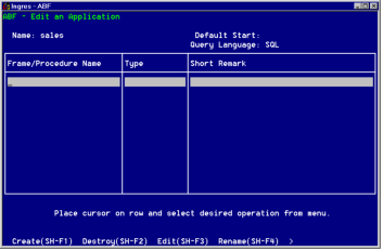 These operations begin with the Edit an Application frame, shown in the following figure.