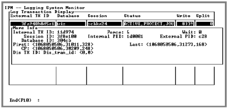 When the More_Info menu item is selected from the Log Transaction Display screen, a pop-up screen containing additional fields for the specified transaction is displayed.