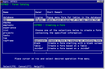 1. Choose Duplicate, Table, or JoinDef from the Creating a Form pop-up.