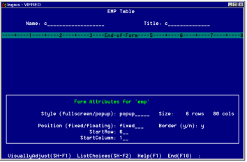 The display style of your current form determines which attributes appear on the Form Attribute pop-up frame. VIFRED provides two basic display styles for forms: