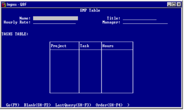 A default form for all three operations used with tables and JoinDefs is generated. For example, if your query target is a JoinDef, the default form might look like the following: