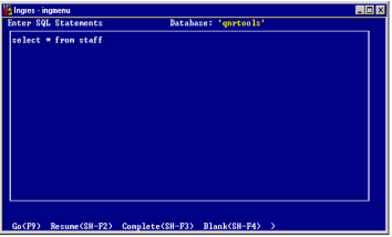 The resulting data displays in the output window for the Interactive Terminal Monitor frame, as shown in the following figure. In this example, all rows from the Staff table in the current database have been retrieved, but not all of the data can fit in the window at the same time.