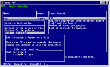 You can enter a file name or full file name specification. If you enter a file name only, RBF sends the report to your working directory.