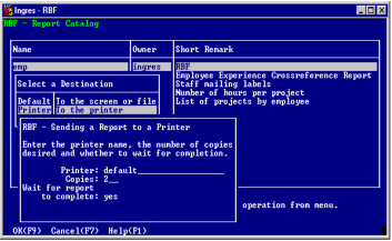5. To print the entire report, choose the OK operation. (If you have not run the report to completion, RBF executes the entire report before sending it to the printer.)