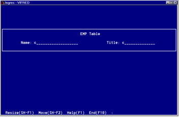 Floating—When displayed for a floating pop-up style form, the Visual Adjust frame does not include the Move operation (because the floating pop-up has no fixed position), and VIFRED positions the pop-up style form in the center of the window.