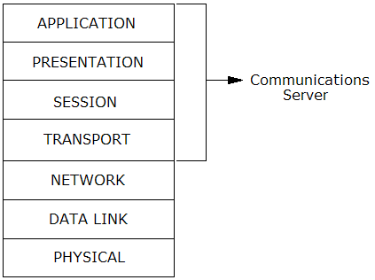 As the main server process of Ingres Net, the Communications Server (iigcc), also referred to as the Net Server, provides access to standard network protocols. It is modeled on the top four layers of the seven-layer Open Systems Interconnection (OSI) model, specified by the International Organization for Standardization (ISO). These network layers are shown here:
