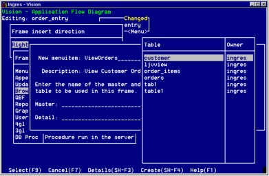 To choose a table listed, position the cursor on the name of the table and choose Select. Vision places the table name into the Master Table field.