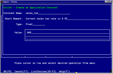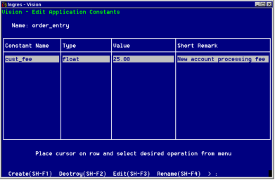 Vision displays the Edit Application Constants Window as shown in the following figure: