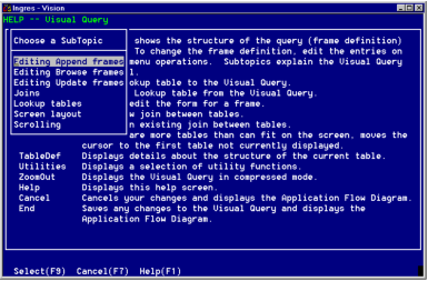 Vision displays the help window for the topic.