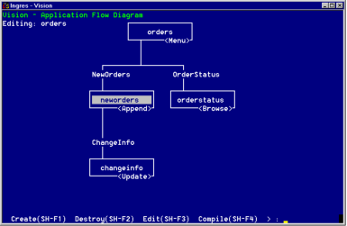 Now the developers are assigned to different pieces of the application. Developer A is assigned to modify "neworders," an Append frame called by the "orders" Menu frame.