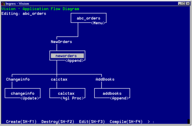 In this case, the child frame "addbooks" is specified to iiexport, so the frame is copied. However, the "addbooks" frame does not exist in the target application's flow diagram. The iiimport operation does not know the relation of the frame to the "neworders" frame. The "addbooks" frame is copied into the "orders" application catalog. To link the frame to the application flow diagram, choose Insert from the menu. Any parameters passing from the "neworders" frame to the "addbooks" frame must be specified in the "orders" application.