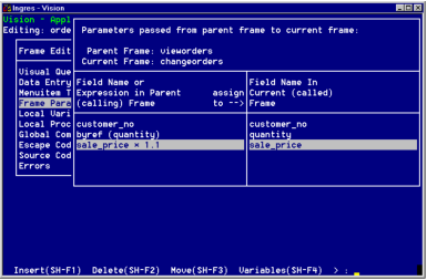 You can specify this value as in Step 4. If you use the ListChoices operation, Vision displays the relevant values for the child frame.