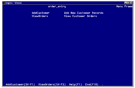 You can also specify that Menu frames have single-line menus so users go to other frames by selecting a menu item from the menu line at the bottom of the window.