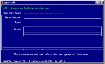 6. Select OK to create the constant. Cancel, instead of OK, terminates the create operation and returns to the Edit Application Constants frame.