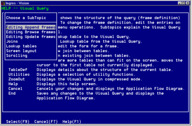 /#subtopic 'Editing Browse frames' 'vqbrows.hlp'