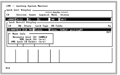 When the More_Info menu item is selected from the Examine submenu, a pop-up containing additional fields for the specified lock is displayed.