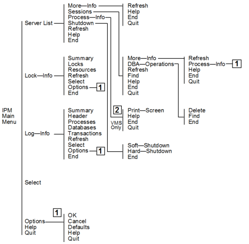 The following figure illustrates each selection that is accessible from the Server_List menus: