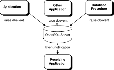 Database events enable an application or the DBMS to notify other applications that a specific event has occurred. An event is any occurrence that your application program is designed to handle. Note that support for database events is optional for OpenSQL servers.