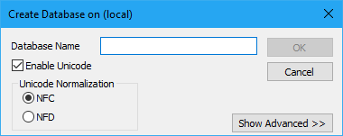 The fields in this sample dialog are filled in as if creating the demodb database.
