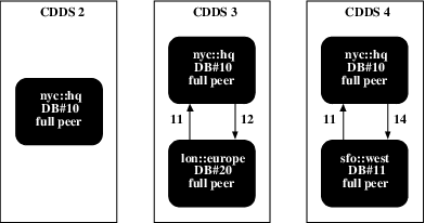 2. Add new CDDSs for horizontal partitioning with a different CDDS for every partition. Expand the Replication branch and highlight CDDS. For more information, see the online help topic CDDS Definition dialog box.Add propagation paths for each new CDDS in the expanded CDDS branch (of the expanded Replication branch) by selecting the desired CDDS number. For more information, see the online help topic CDDS Definition dialog box.